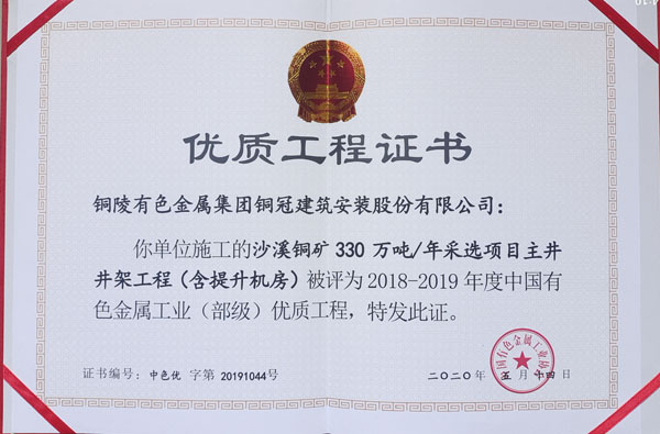 沙溪銅礦采選項目主井井架工程(部?jì)?yōu))
