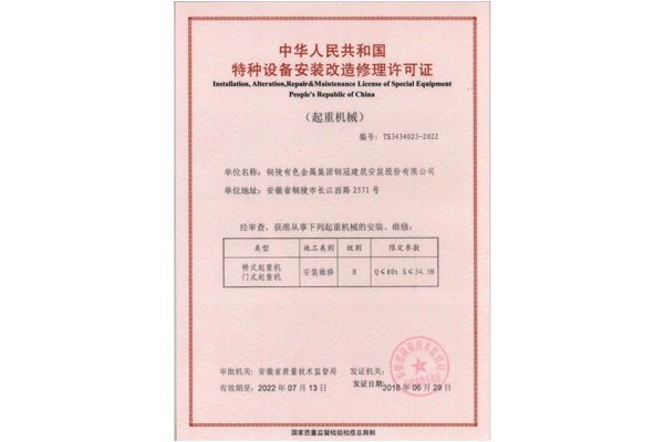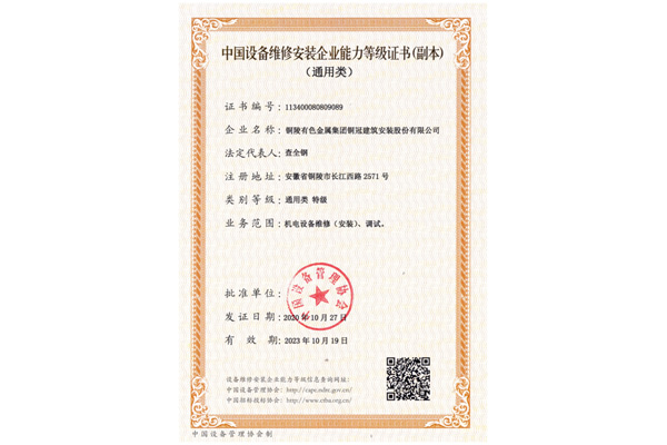 中國設備維修安裝企業(yè)能力等級證書(shū)
